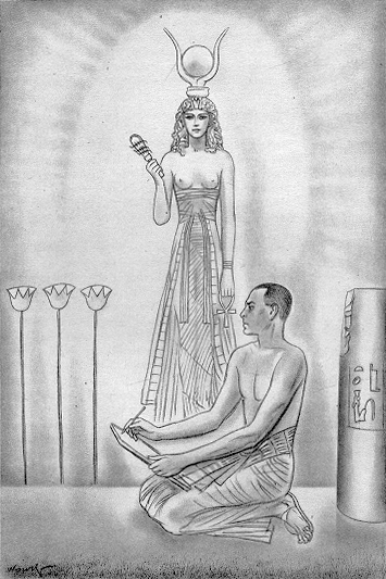De la Cámara jako egyptský velekněz s bohyní Isis na obrázku Jiřího Wowka.