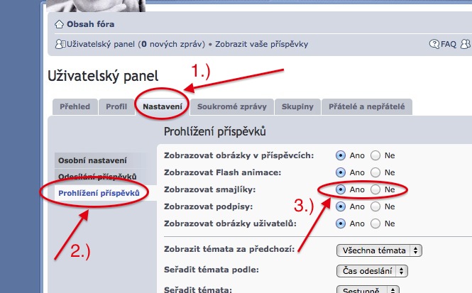vidíš, to mě ani nenapadlo. v uživatelských nastaveních je možnost - prohlížení příspěvků a je tam možnost zapnout/vypnout smajlíky, ale pro neregistrované uživatele se to přednastavuje v celkovém foru.