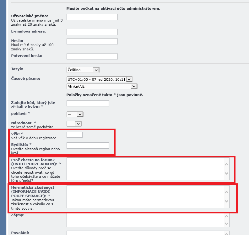 Při registraci prosím tedy vyplňte řádky o Vás, zejména Proč se chcete na fórum registrovat (za jakým účelem) a jakou máte zkušenost.