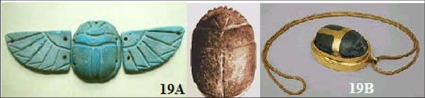Symbol skarabea má stejný význam, jako ono alchymistické T, zrození slunečního Boha, východ nového slunce. Hlavička skarabea bývá stylizována často do podoby právě vycházejícího slunce.