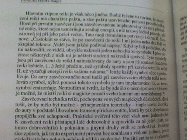 Reiki je udělaná věc, která se snaží našroubovat do jádra českého hermetismu a jeho jediným úkolem je, jako řady dalších směrů, které stále rostou, aby pravé jádro magie degradovalo. Daří se tomu, daří, bohužel.
