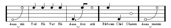Dech3: S prvním ALEFem slova „ADONAJ“ začnete znova nízko a postupujete až k nejvyšší notě. Druhá a třetí slabika je pronášena na stejně vysoké notě.