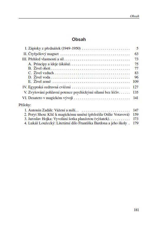 Tento svazek obsahuje drobné texty, které František Bardon zpracoval pro své nejbližší žáky v Opavě a v Praze a které měly původně soukromou povahu. Po širší dohodě je nyní zveřejňujeme, abychom důstojně připomněli letošní 60. výročí úmrtí autora a zároveň abychom dali čtenářům možnost poznat a prožít další části hermetismu.