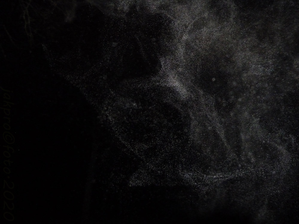 Celkem kompaktní světelná plocha nebo mnoho menších útvarů vyplňuje celý záběr a jde ještě dále za něj, je to všude. Že nejde o páru snad už připomínat nemusím, jak by snímek měl dle očekávání vypadat, je vidět na poslední fotce. Upozorním jen na to, že v pravé části jsou světelné body větší, hrubší, v levé jsou jemnější a tvoří již jednolitou plochu, vlevo nahoře se dokonce začínají formovat nějaké tvary. To není zdaleka všechno, na další fotce se obraz zcela proměnil:
