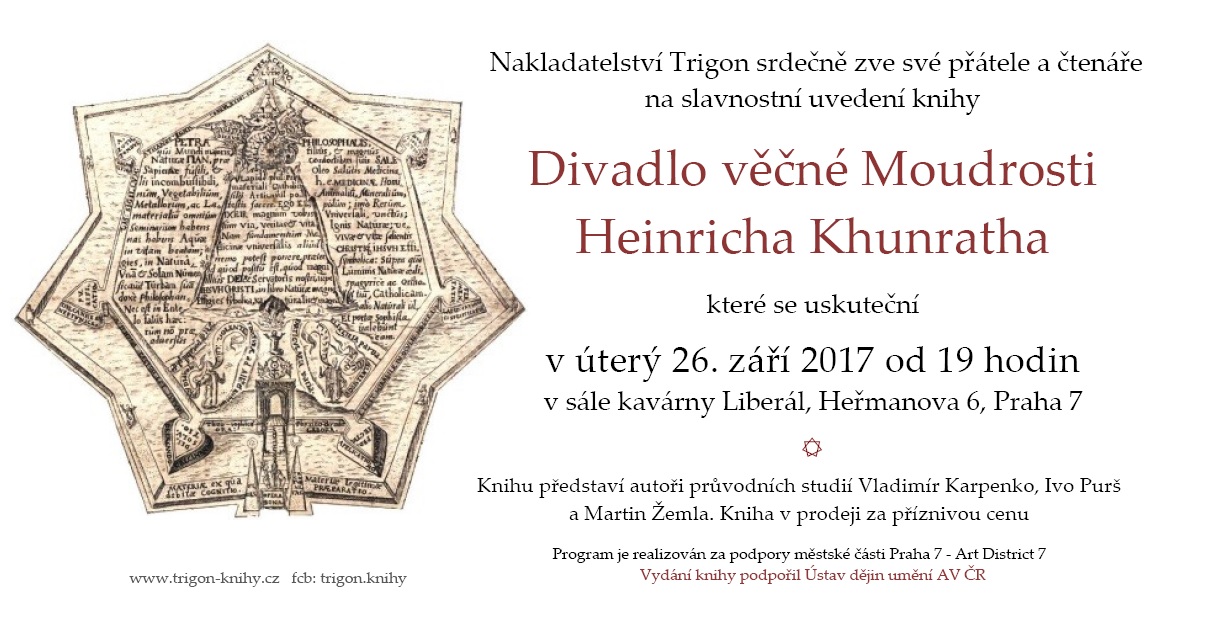 nakladatelství Trigon vydalo díky podpoře Grantové agentury ČR objemný a v pravdě monumentální alchymický svazek Divadlo věčné moudrosti slavného lipského alchymisty, lékaře a paracelsiána Heinricha Khunratha (asi 1560-1605).