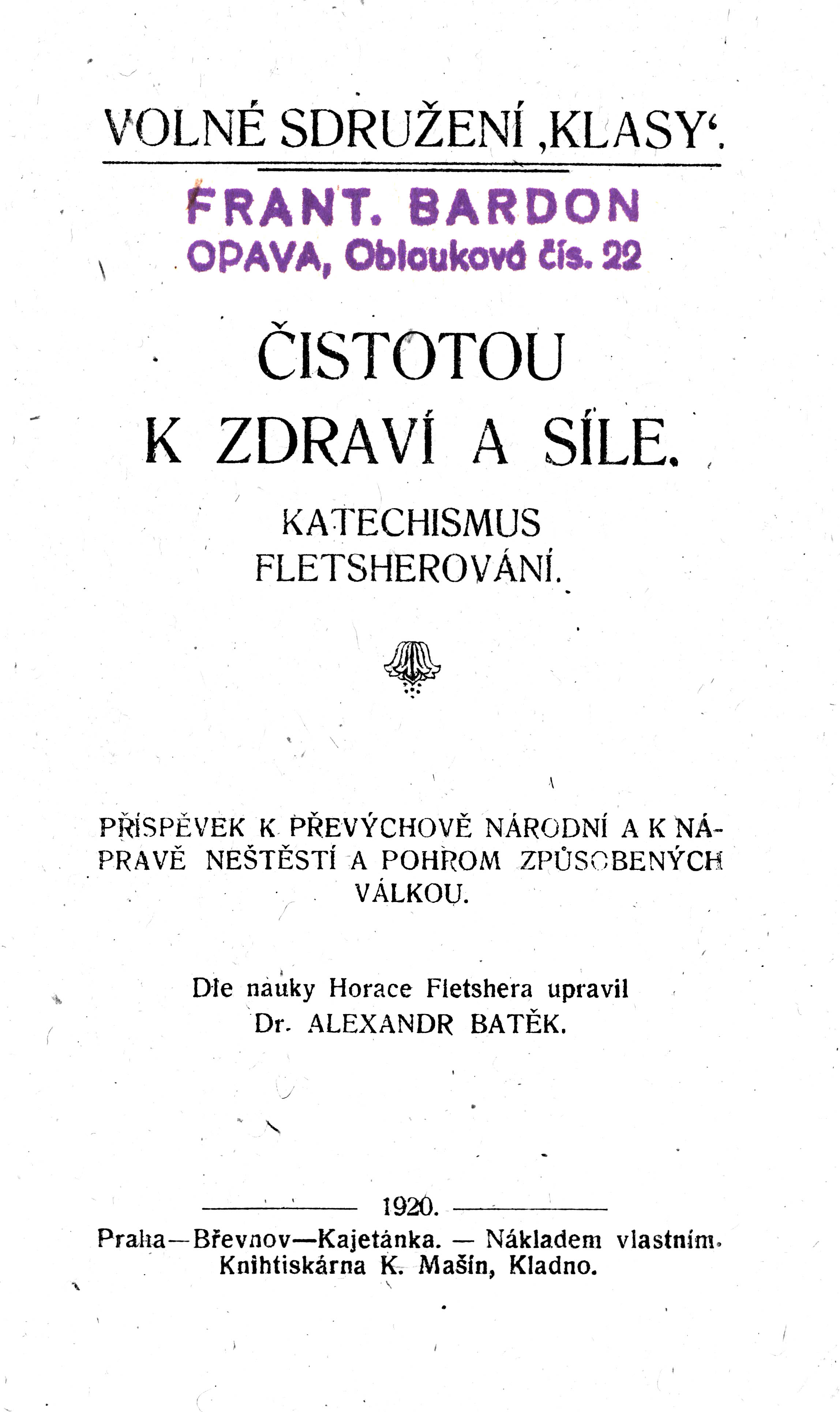 přidávám na fórum skeny brožurky Katechismus fletscherování - Čistotou k zdraví a síle, která pochází z knihovny Františka Bardona. Kniha, resp. nauka, kterou zhuštěně podává, je jedním z podkladů Brány k opravdovému zasvěcení, konkrétně částí o vědomém jedení (tajemství eucharistie) v magickém výcviku těla I. stupně. Užijte ji dobře!