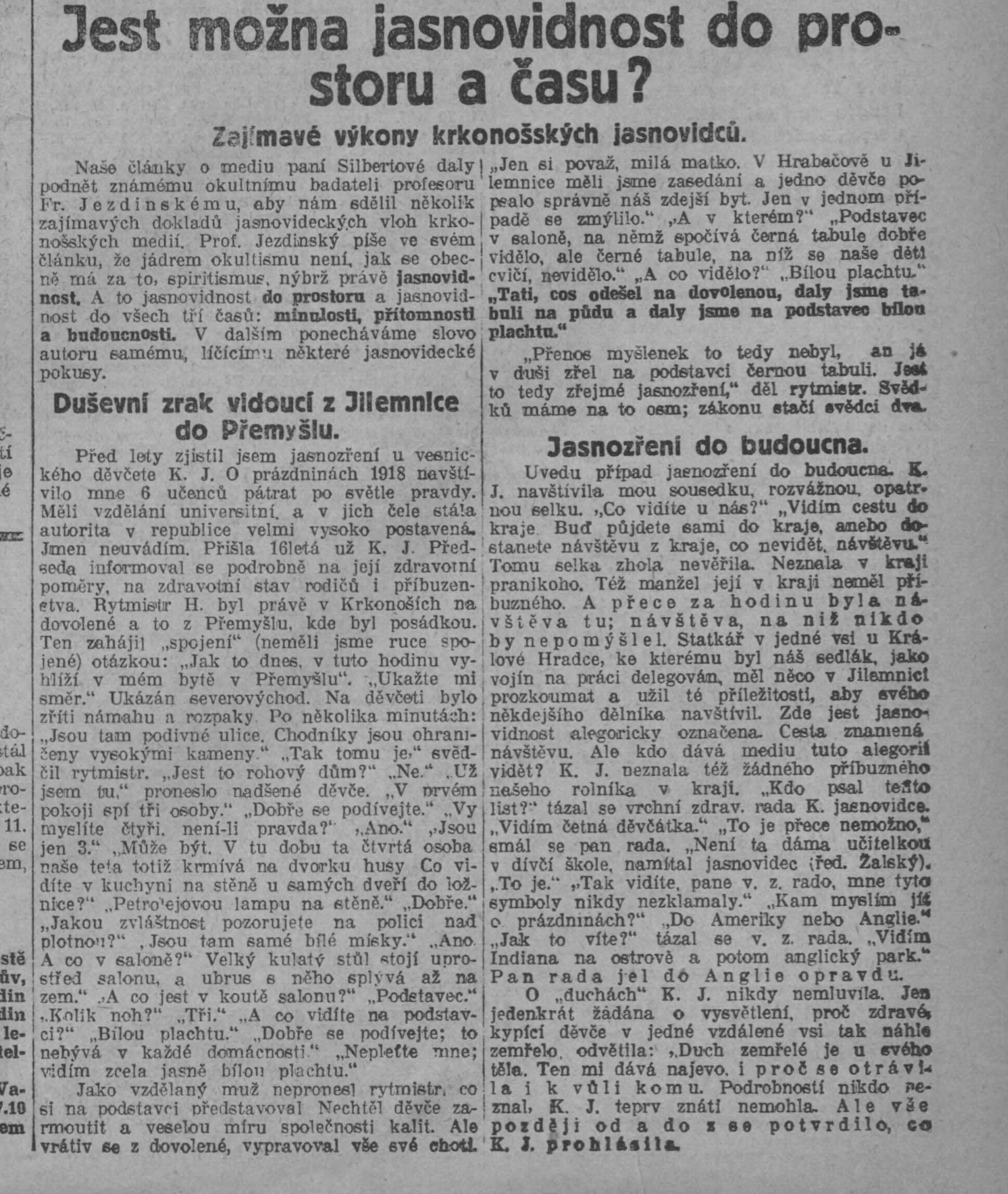 Dobový článek Františka Jezdinského o jasnovidnosti.
