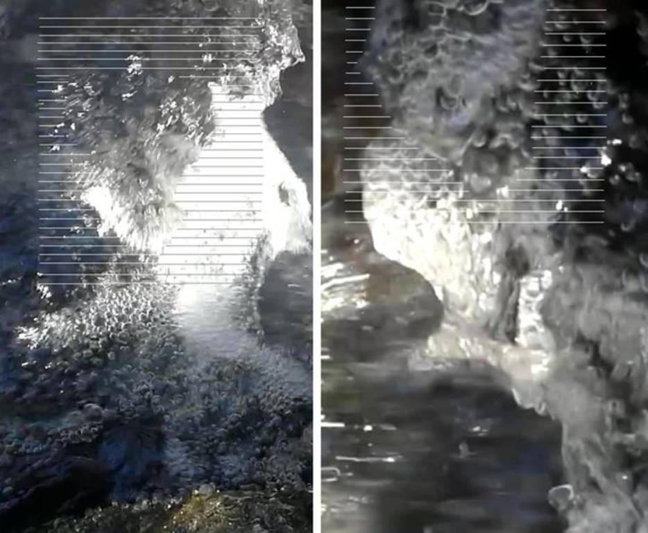 Vím, že není pro každého snadné, napojit se vnitřně - mentálně na obrazy, které na první pohled vypadají jen jako vodní čmouhy, jako například na následujícím snímku. Mohlo by se zdát, že na něm žádné obrazy vodních bytostí nejsou?