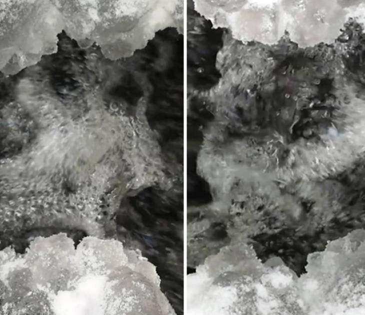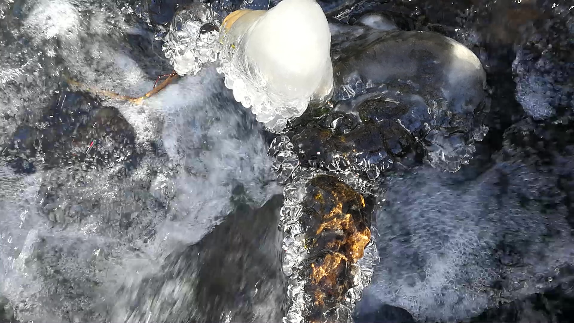 Tato kombinace dvou přírodních úkazů (mrazu a sluneční energie) vytváří pozoruhodné prostředí ve vodním živlu, jaké žádný z nich sám o sobě vytvořit nedokáže. Každý kámen, kořen, větev se v namrzající vodě promění v ledové krystaly. Když je prosvítí sluneční světlo, zaplaví vodní prostor ohromující množství třpytu lesku a barev.