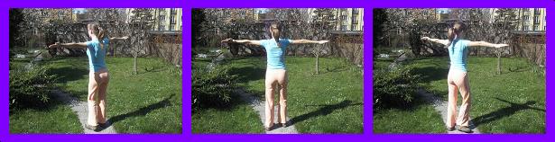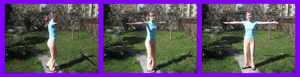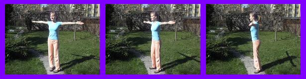 Cvik začínáme tak, že upažíme ruce do vodorovné polohy, levou dlaň vytočíme směrem nahoru a pravou dlaň směrem dolů k zemi. Pravidelně dýcháme a takto se začneme točit ve směru hodinových ručiček.