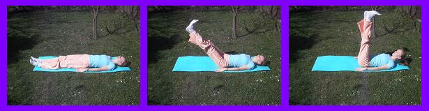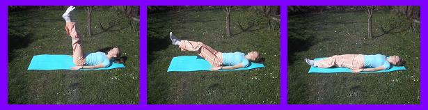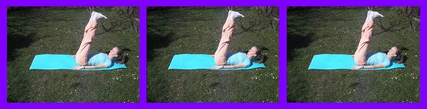 Začneme pomalu vydechovat, nohy pokládáme dolů na podložku, hlavu vracíme na zem až do úplného obnovení uvolněné výchozí polohy. Opět trvání tři vteřiny. A poté následuje další opakování stejného cviku až do stanoveného počtu opakování. Pak teprve přejdeme k následujícímu cviku.