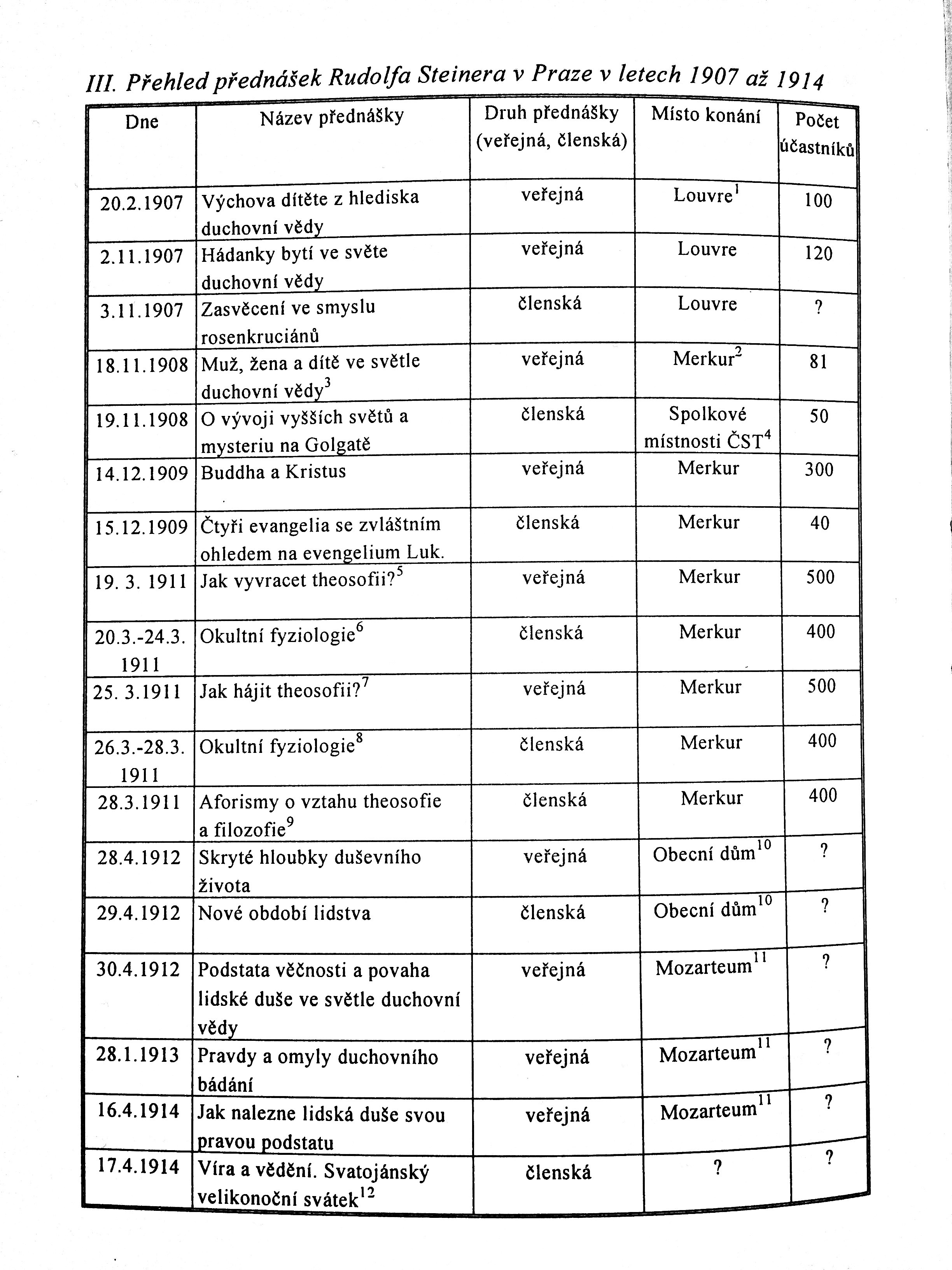 Seznam pražských přednášek Rudolfa Steinera (převzato z literatury).