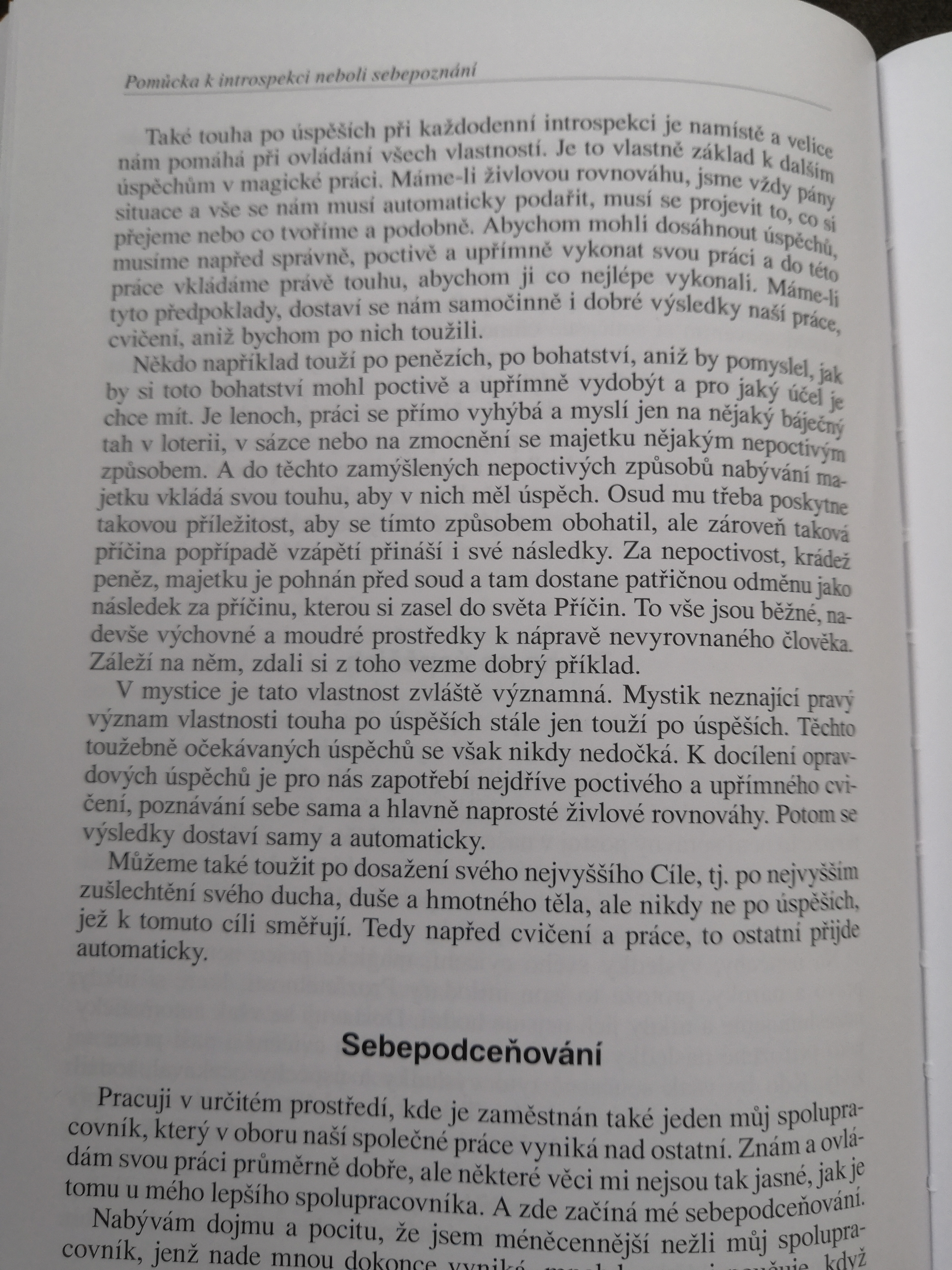 Pokud jsi četl Pomůcku k introspekci od Mistra Frabata, pak bys v ní našel slova stejného významu.