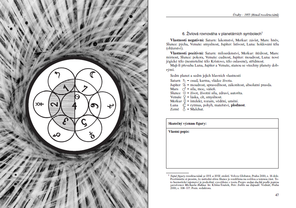 Korunou celé knihy je dokument nazvaný Rituál rosekruciánů, v němž v intencích magické školy Františka Bardona rozebírá význam zasvěcovacích obrazů ze slavných Tajných figur rosekruciánů. Obrazy těchto figur rekonstruoval a coby působivé ladiče je pojal můj milý kolega Michal Jan Stránský.