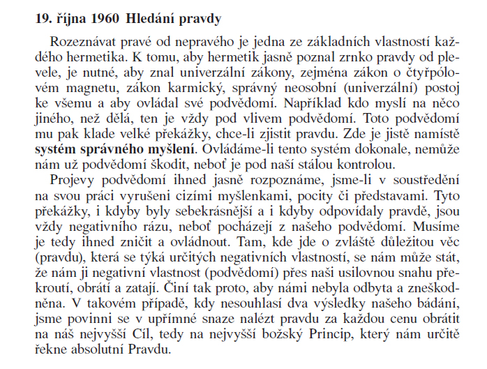 Kniha zachycuje poslední práce pana Josefa Drábka z let 1954 až 1961, kdy zemřel. V knize jsou obsaženy zlomky zápisků z jeho magického deníku, ale hlavní obsah je tvořen jeho úvahami, v nichž bilancuje život žáka magického systému.