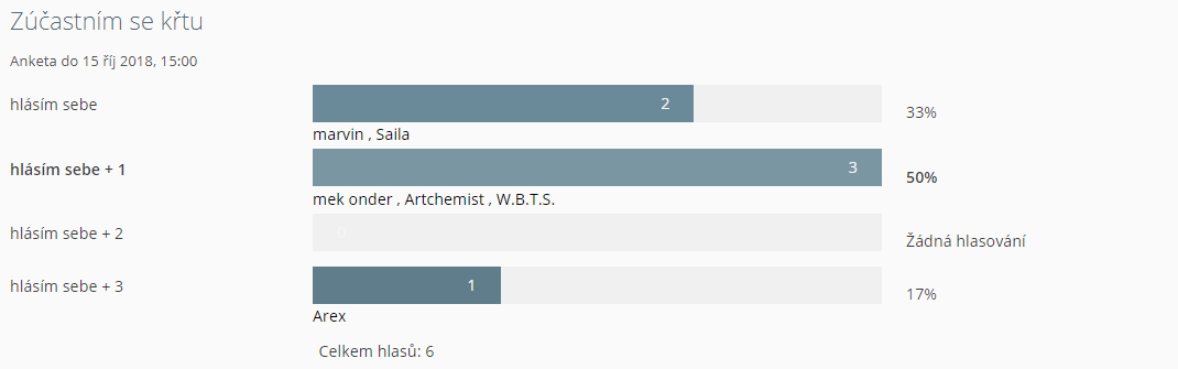Marvin: Prosím rovnou to přesuň, kam to podle Tebe nejlépe patří, a anketu k přihlášení můžeme nechat nejdéle do pondělka s tím, že 16 lidí je limit.