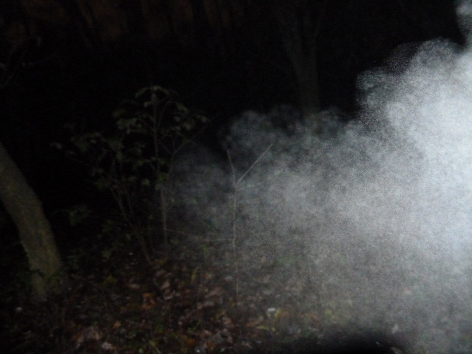 Fotka není z listopadu, ale z konce října, datum je z překopírování do PC. Nebylo ani moc zima a nebyla mlha a neměl jsem páru u pusy :) Tohle všechno jsem vyloučil. Před objektivem, který jsem držel s rukama napřaženýma před sebou nebylo nic viditelného, ani bych tam snad nedofoukl :) Navíc je ta věc spíš dole u cesty a já měl hlavu nahoře.