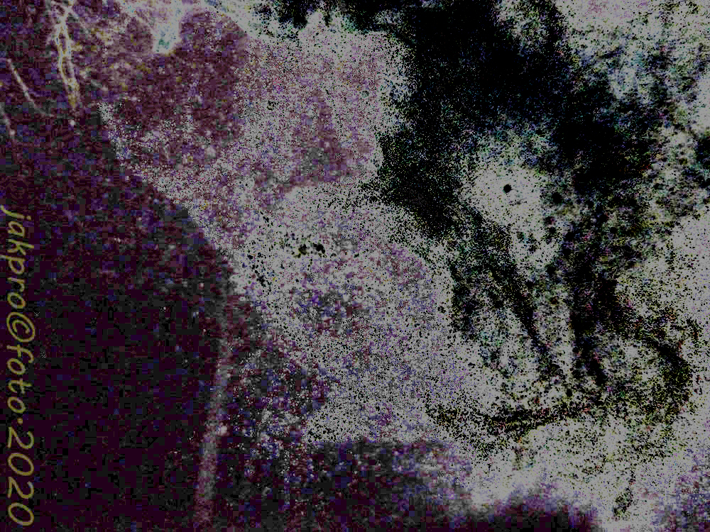 Celkem kompaktní světelná plocha nebo mnoho menších útvarů vyplňuje celý záběr a jde ještě dále za něj, je to všude. Že nejde o páru snad už připomínat nemusím, jak by snímek měl dle očekávání vypadat, je vidět na poslední fotce. Upozorním jen na to, že v pravé části jsou světelné body větší, hrubší, v levé jsou jemnější a tvoří již jednolitou plochu, vlevo nahoře se dokonce začínají formovat nějaké tvary. To není zdaleka všechno, na další fotce se obraz zcela proměnil: