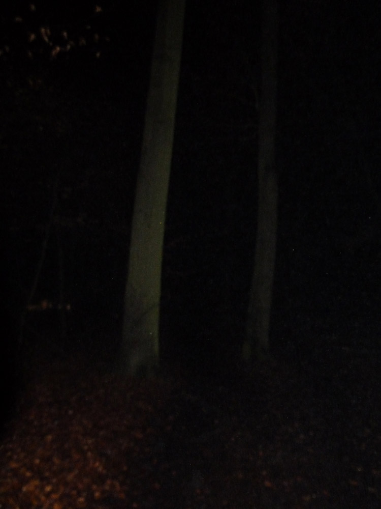 Jen o pár kroků dále vznikl možná nejpodivnější snímek. To, co se na něm ukázalo, totiž netvoří jeden objekt, je to více objektů roztroušených po celém záběru. Tvarem zřetelně připomínají postavy či bytosti. Je vidět jednu či spíše několik postav, pravděpodobně dětí (včetně té vlevo od kmene stromu), jak cosi sbírají v lesním podrostu. Za nimi, ve střední části snímku, vidím vystupovat jak ze staré daguerotypie měšťanský pár, pravděpodobně z počátku 19. stol. V pravo od něj je další objekt, nějaká větší postava, nebo pár v popředí, jak drží něco v ruce (nebo venčí psa). Skoro to vypadá, jako nějaký výjev z jiného času. Skutečná událost, nebo jen obraz něčeho? Tenhle snímek speciálně ještě prozkoumám.