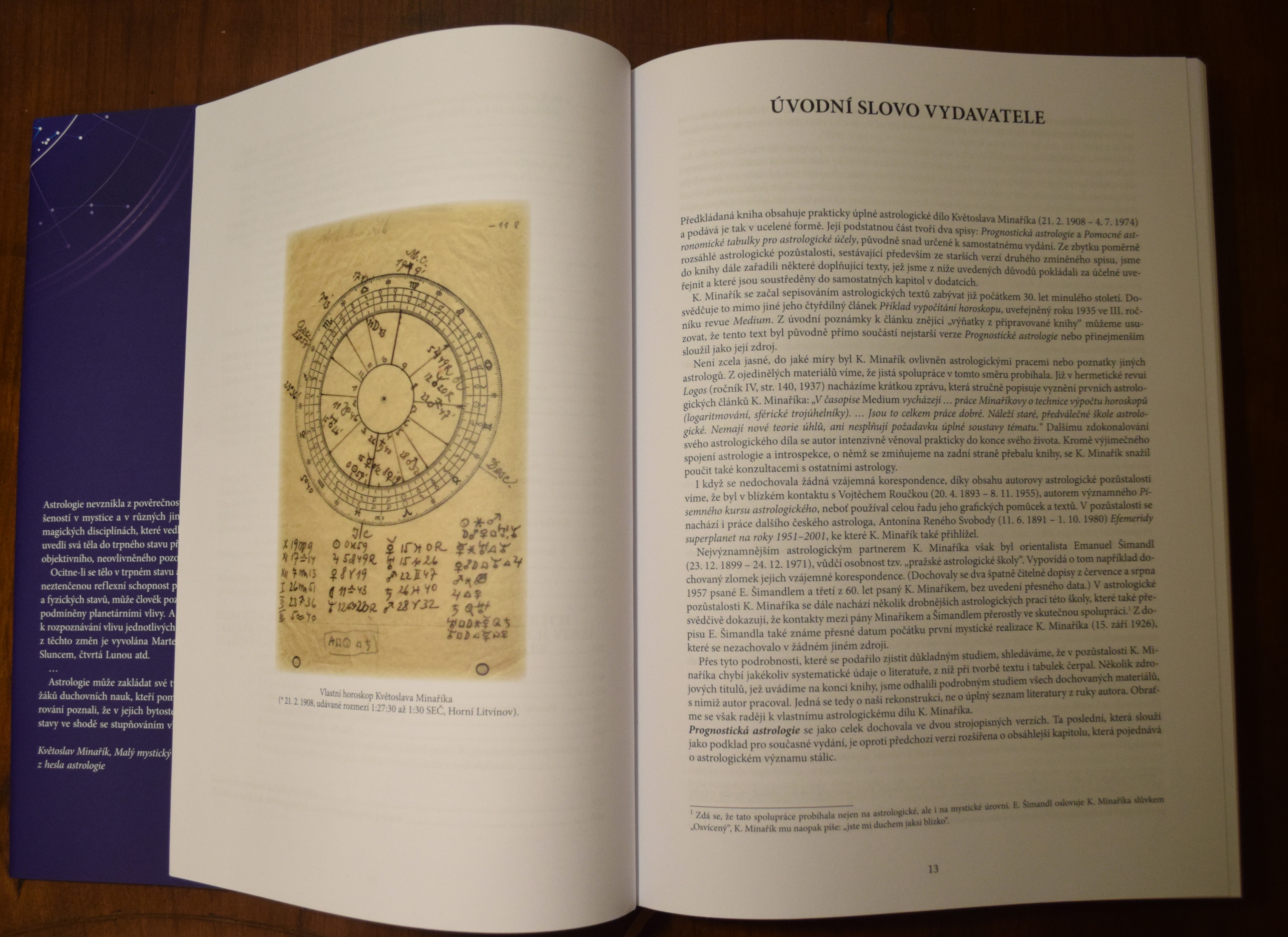 tento týden vyšla po dlouhých letech příprav poslední nevydaná kniha našeho předního mystika Květoslava Minaříka Prognostická astrologie. V tomto úctyhodném svazku formátu A4 je na 532 stranách obsaženo celé astrologické dílo Květoslava Minaříka, které se dochovalo navzdory nepřízni osudu.
