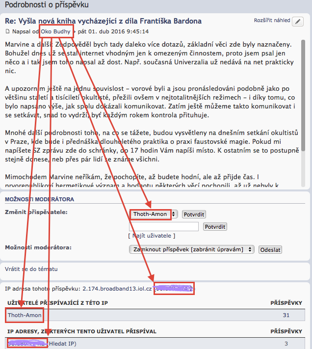 Osobně mi spíš přijde, že kážeš vodu, piješ víno. Mě nařkneš z útočného osočování, ale když jsme se tě slušně zeptali, kde je ta spojitost mezi Bardonem, tak jenom povýšeně odsekneš, že pochopíme, až budeme hodni. O mě říkáš, že vyvolávám spory, ale sám sem vneseš svou svrchovanou moudrost dosaženou léty praxe a odříkání a prohlašuješ se za nejchytřejšího. Myslíš, že jsi ten povolaný a máš právo všem rozdávat a soudit nás nízké. Nevím co chceš, abychom se tu všichni poklonili a šli kupovat knihu, o které jsi nám v podstatě nic neřekl ? To není dobrý úvod. Skrýváš se pod pseudonymem, kterého nikdo nezná a nechceš prozradit svůj vztah s autorem, takže vlastně nepřiznáš střet zájmů.