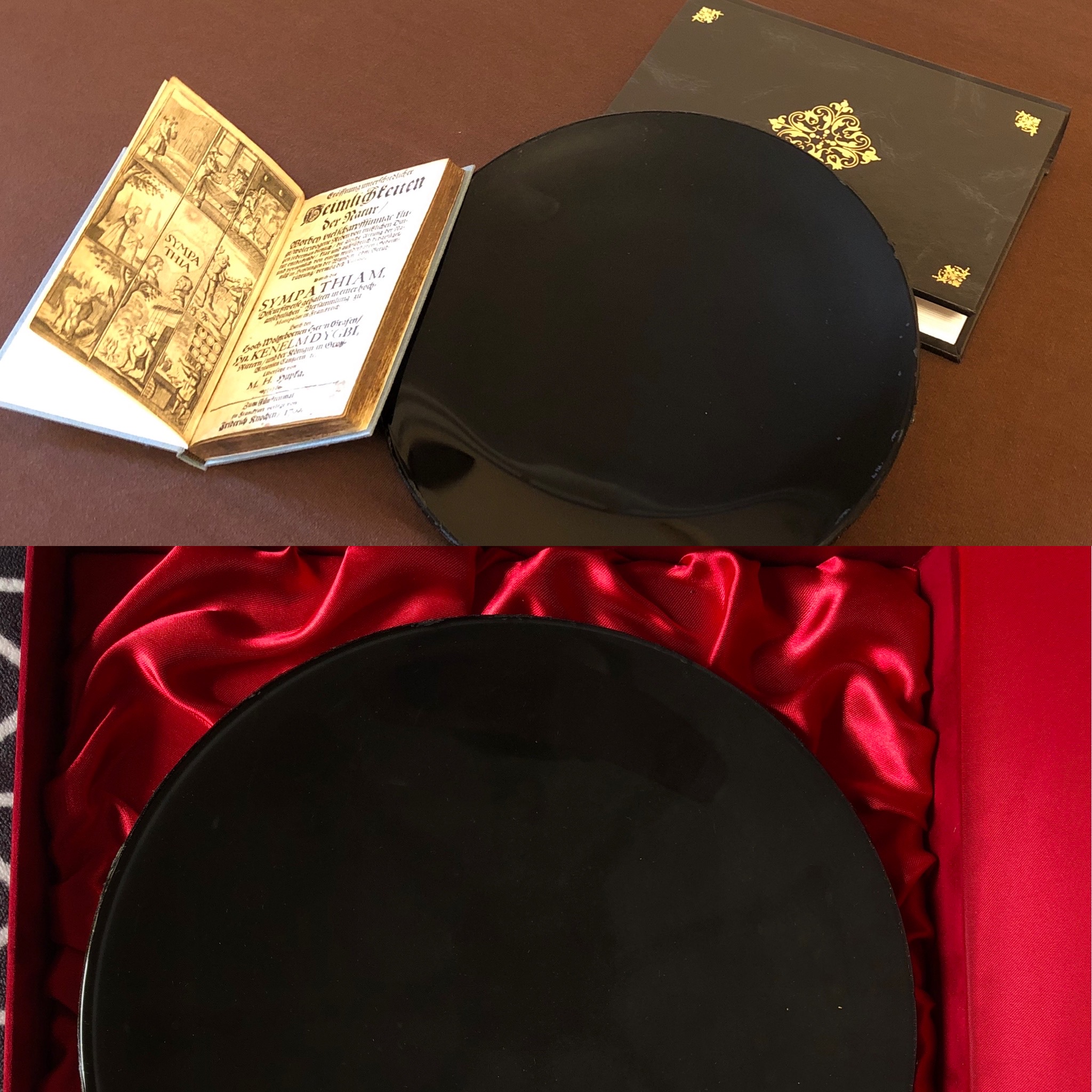 Součástí balení je vlastní magické zrcadlo, sametová izolační krabička ručně vyrobená knihařem a komplexní návod k použití.